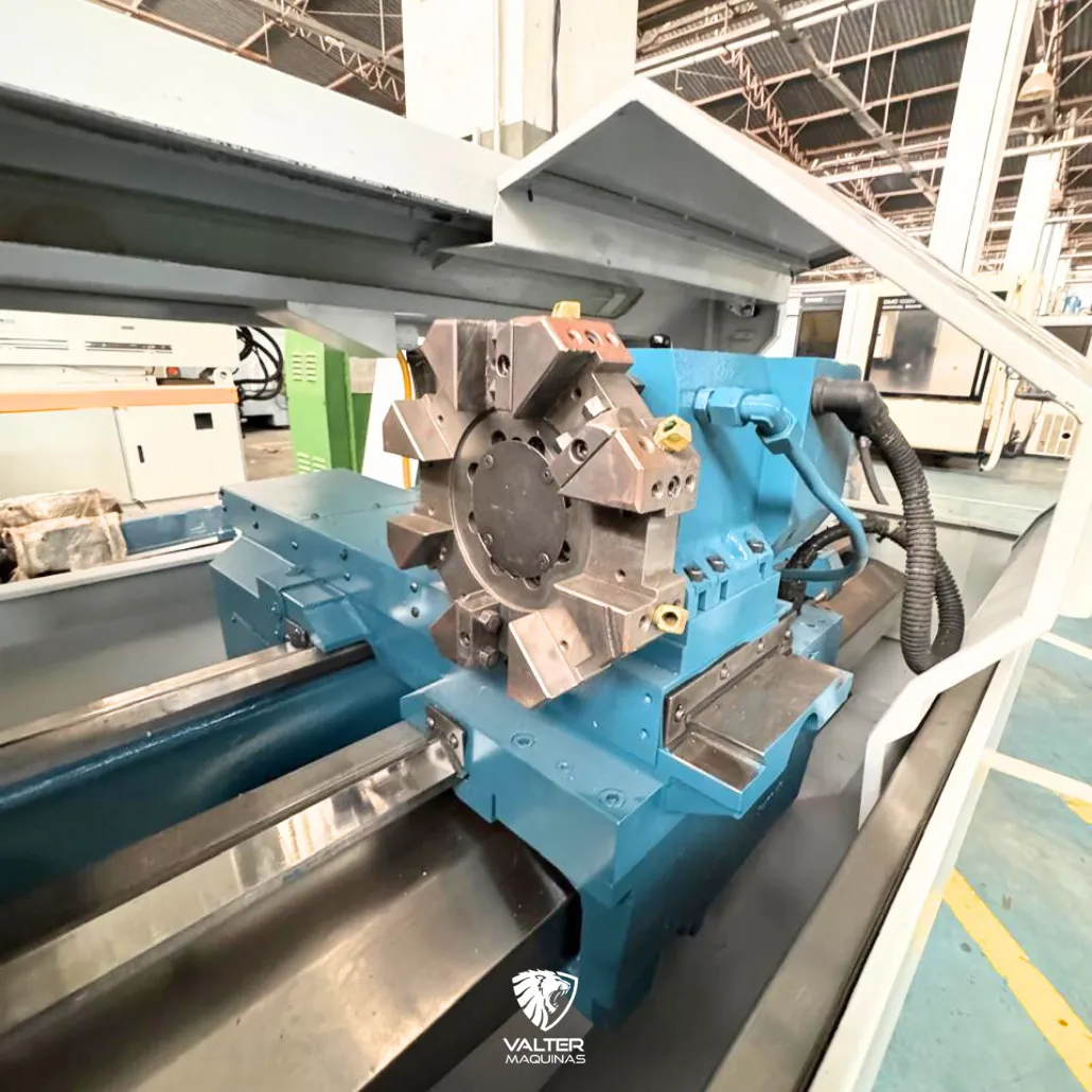 A máquina está equipada com uma torre elétrica automática para 8 ferramentas, permitindo trocas rápidas via programa CNC, sem interrupção manual do operador.