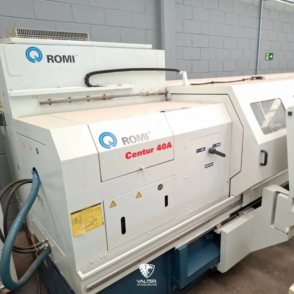 O Torno CNC ROMI Centur 40A, fabricado em 2013, é uma máquina de alta performance e grande versatilidade, projetada para a usinagem de peças longas e pesadas com extrema precisão. Equipado com o comando numérico Siemens, este modelo oferece uma operação estável e eficiente, sendo ideal tanto para ferramentarias quanto para produção seriada. Com um generoso comprimento de 3000 mm entre pontas e um Diâmetro sobre o Barramento de 685 mm, o Centur 40A permite o torneamento de componentes volumosos. Sua robustez é complementada por uma passagem no eixo árvore de 104 mm, facilitando a usinagem de tubos e eixos de grande bitola com segurança e agilidade.